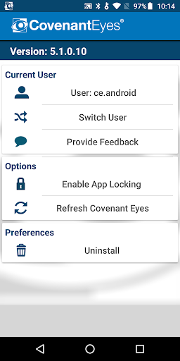 Ios.iosif you are an ios fan, for smooth performance and experience you'll need requires ios. * prevent easy uninstalls, and * enforce app locking. In general, covenant eyes is a very useful filtering and accountability app for having top notch tracking and sensitivity settings. This app uses device administrator and accessibility service permissions. Covenant eyes use your covenant eyes account on android devices.